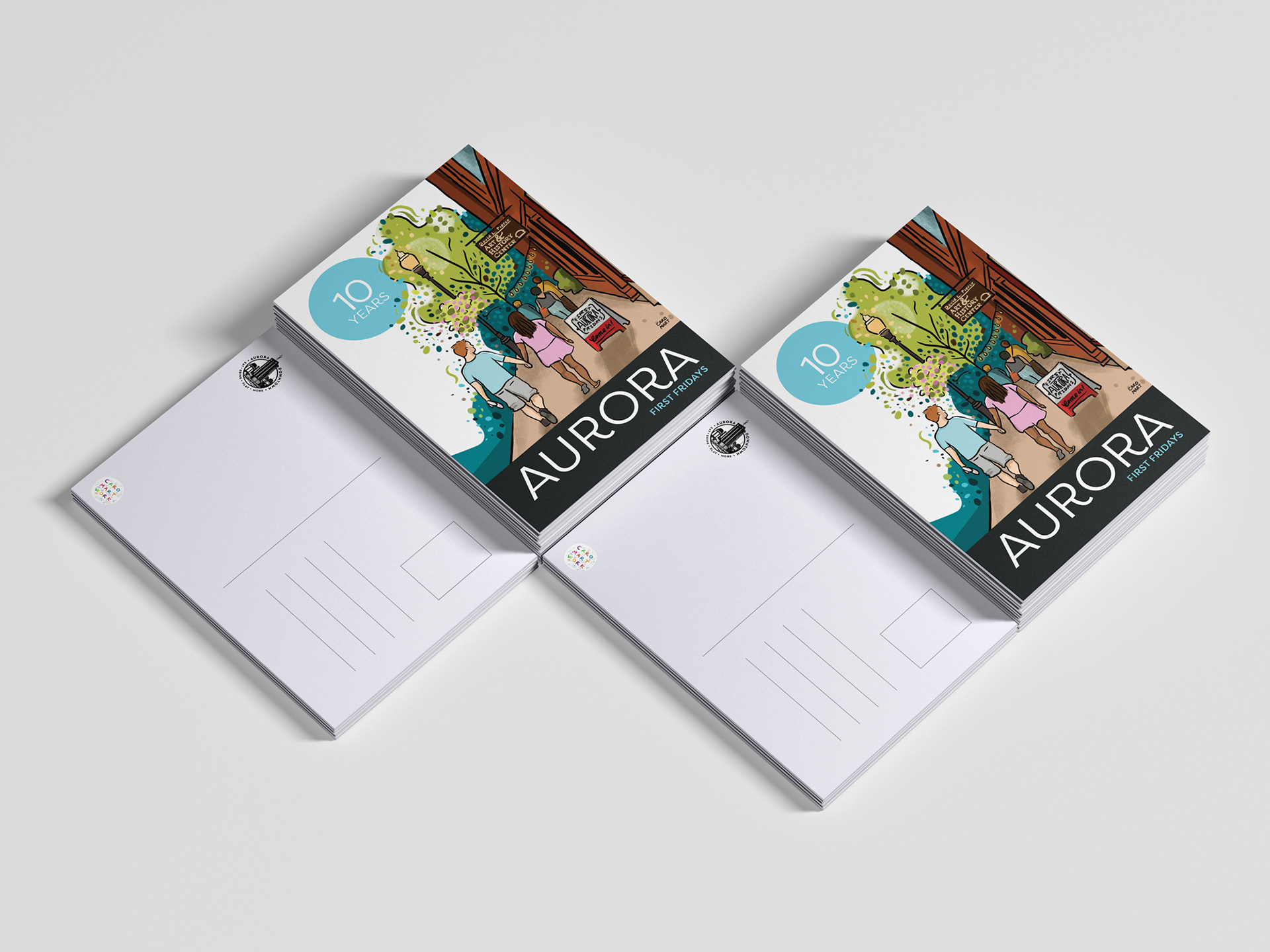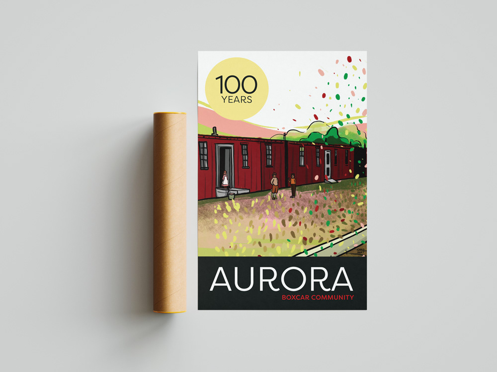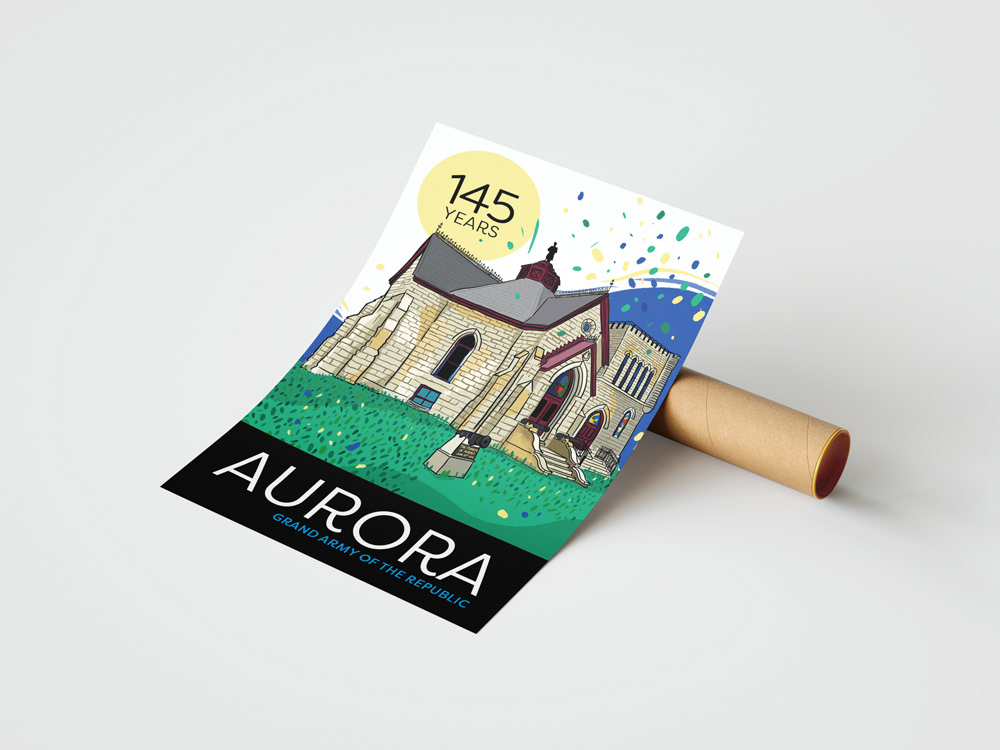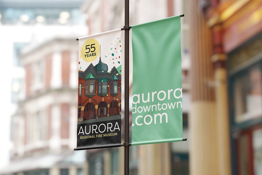 Illustration and design of banners, posters and postcards for Aurora Anniversaries Celebration