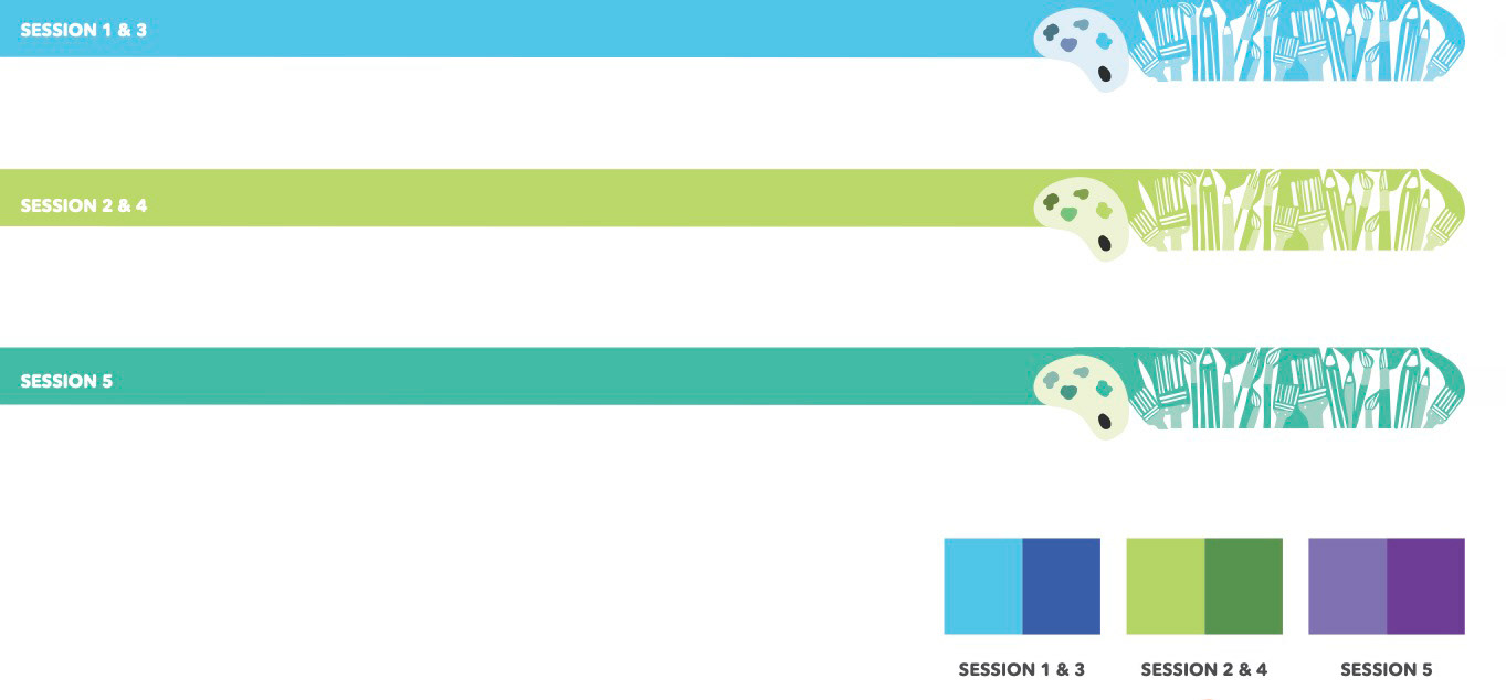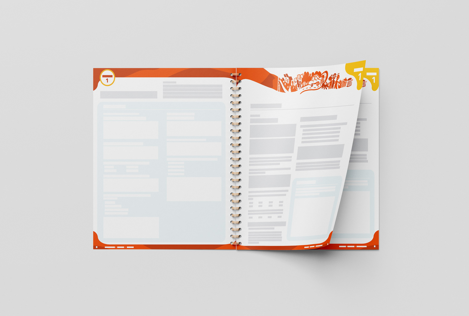 Prototypes for illustrated headband design for Curriculum Associates Language Arts K-2 Teachers Guide material.